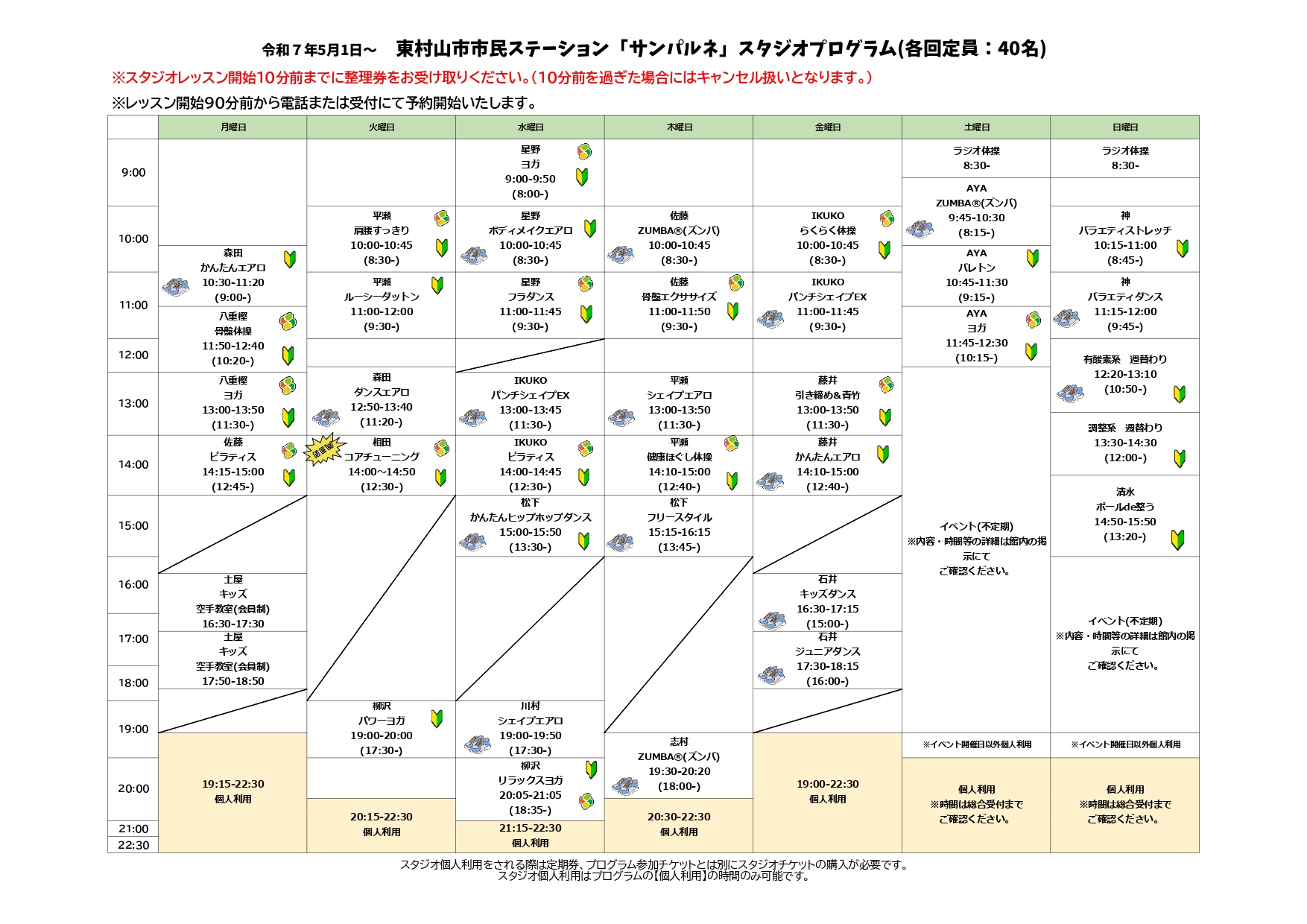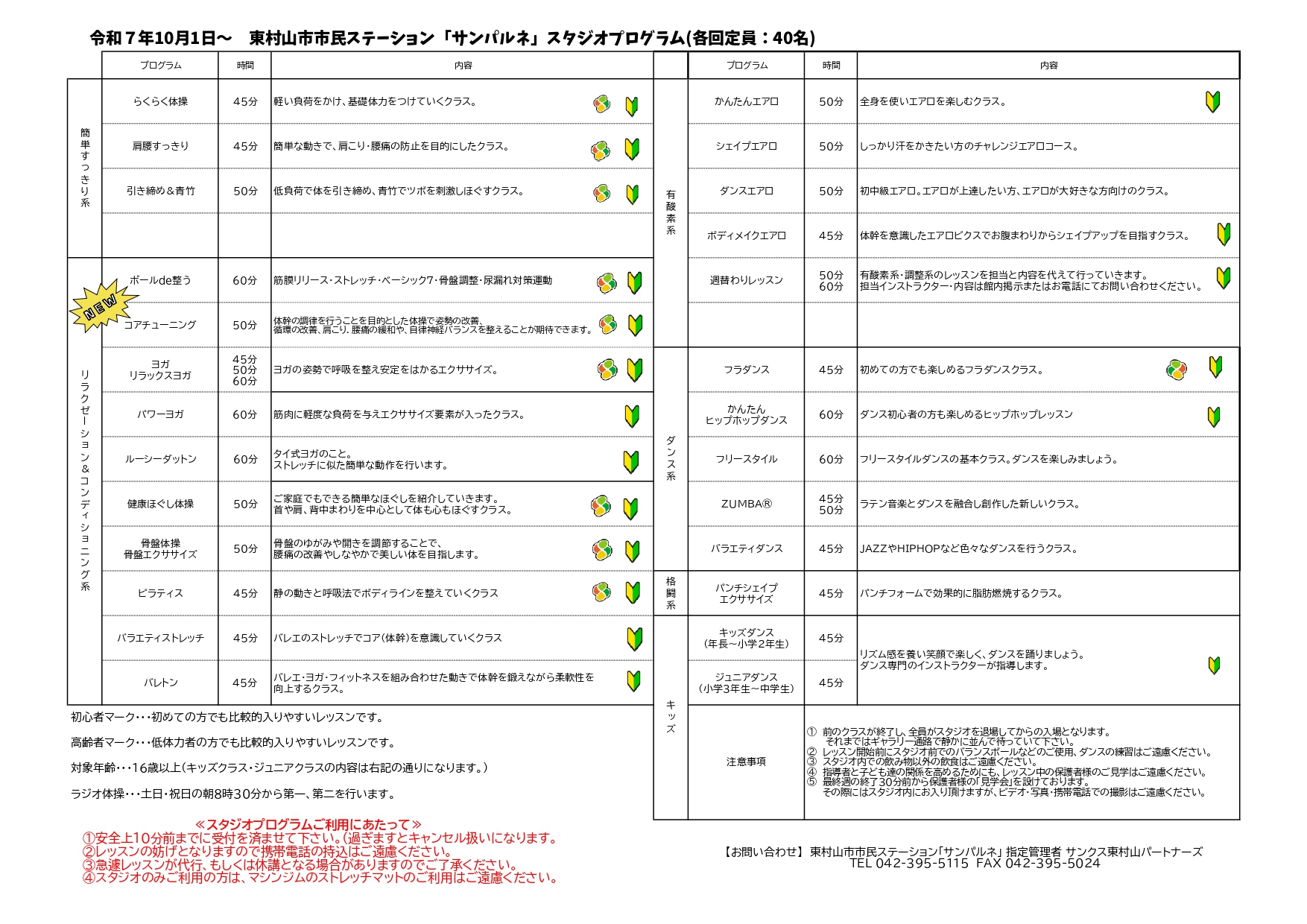 2025年10月より、スタジオレッスンプログラムが一部変更となります。