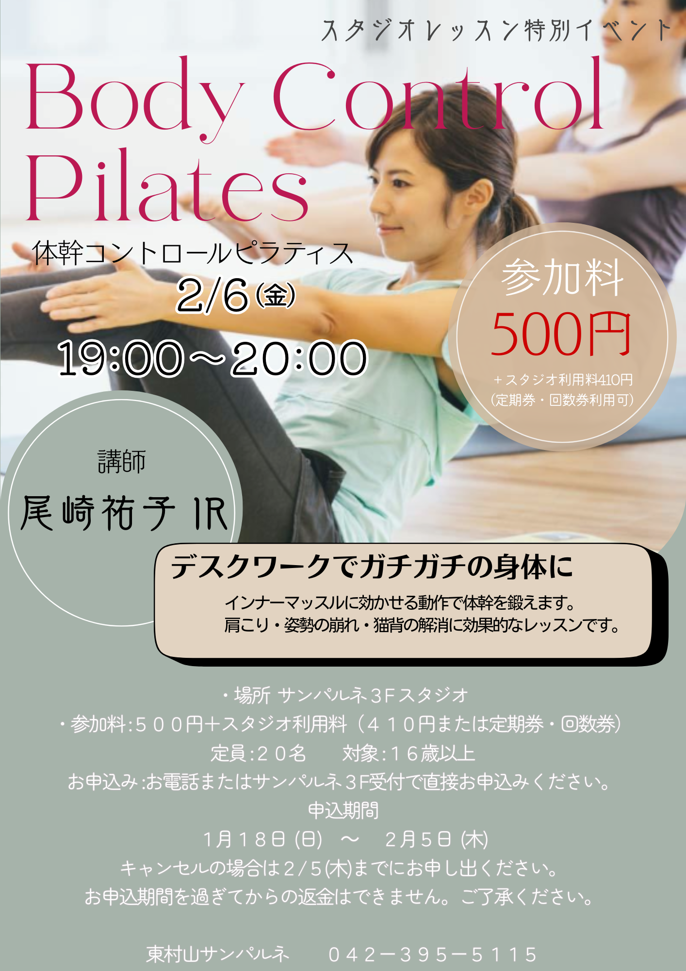スタジオプログラム特別レッスン【体幹コントロールピラティス】を開催します!