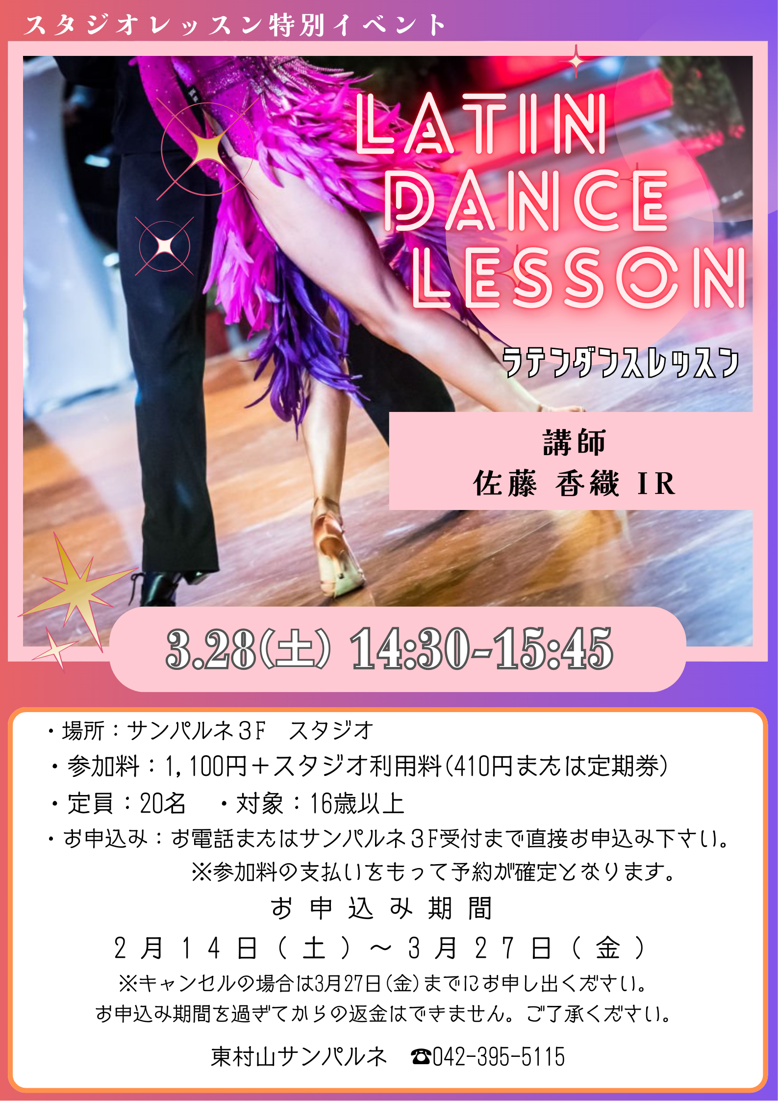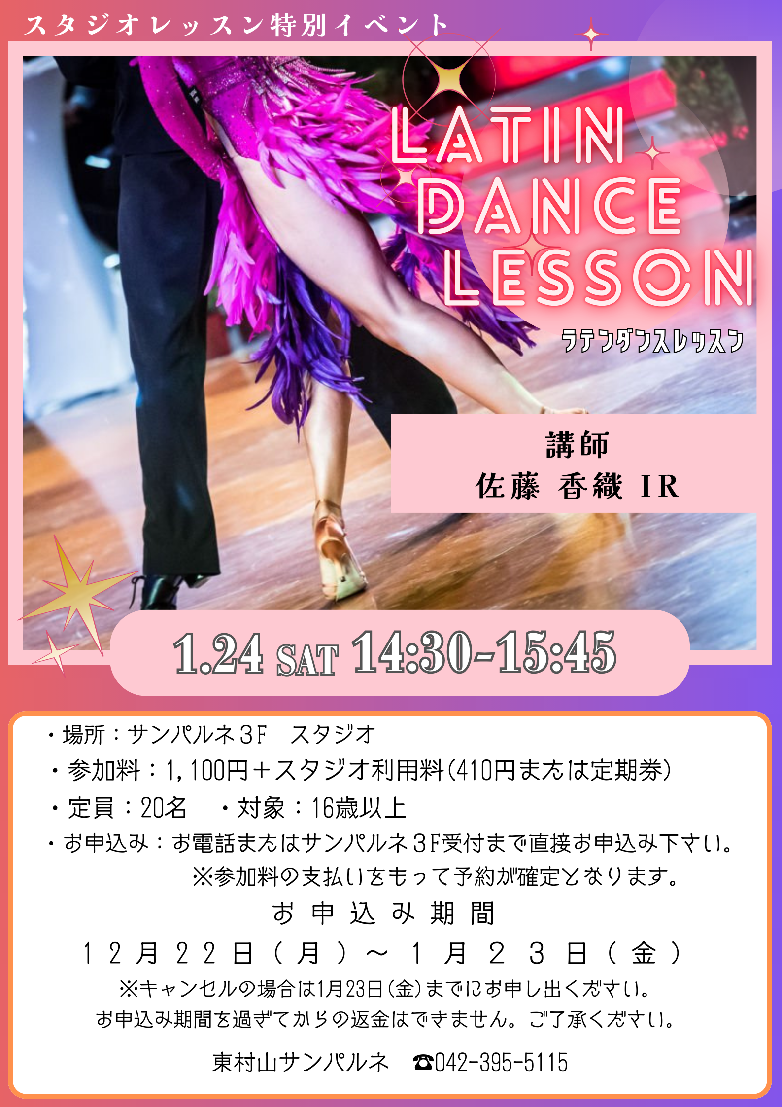 【スタジオ特別レッスン】ラテンダンスレッスン ※事前申込み制となります。