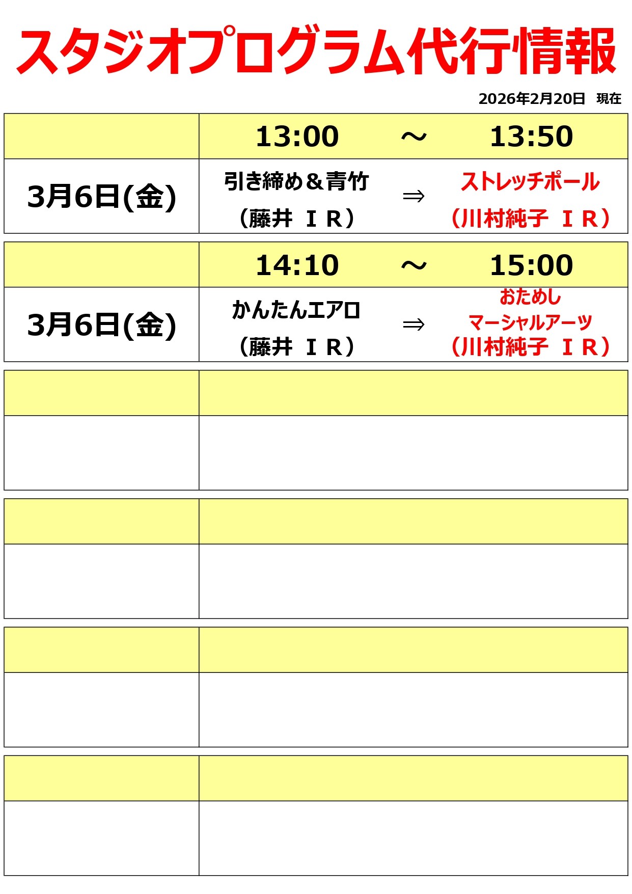 スタジオプログラム代行情報(2026.3月分)